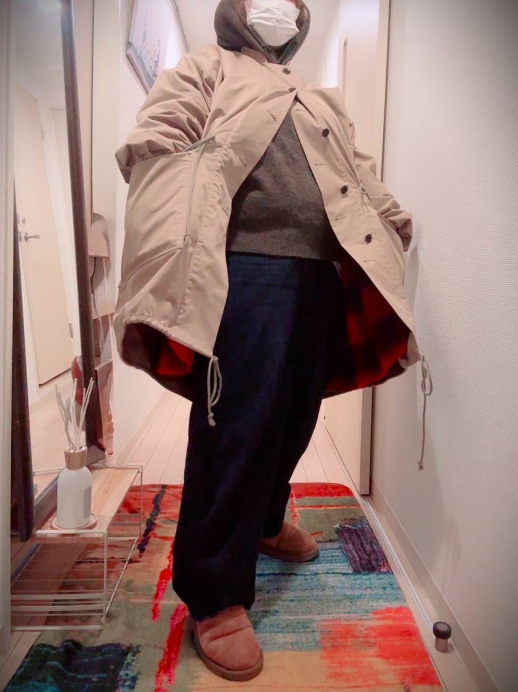 ニットパーカーにモッズコートを重ねることで、おしゃれを楽しみながらしっかり防寒も👍◎